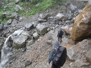 The second landslide was still active so we took turns running across as fast as we could between microwave sized rocks that came whizzing out of the mist above. We all quickly learned the Nepali word for ROCK so when the spotters on either side started yelling we knew to duck.