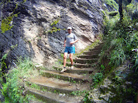 Martin leading out onto the trail; Steep stairs make for fast elevation gain.