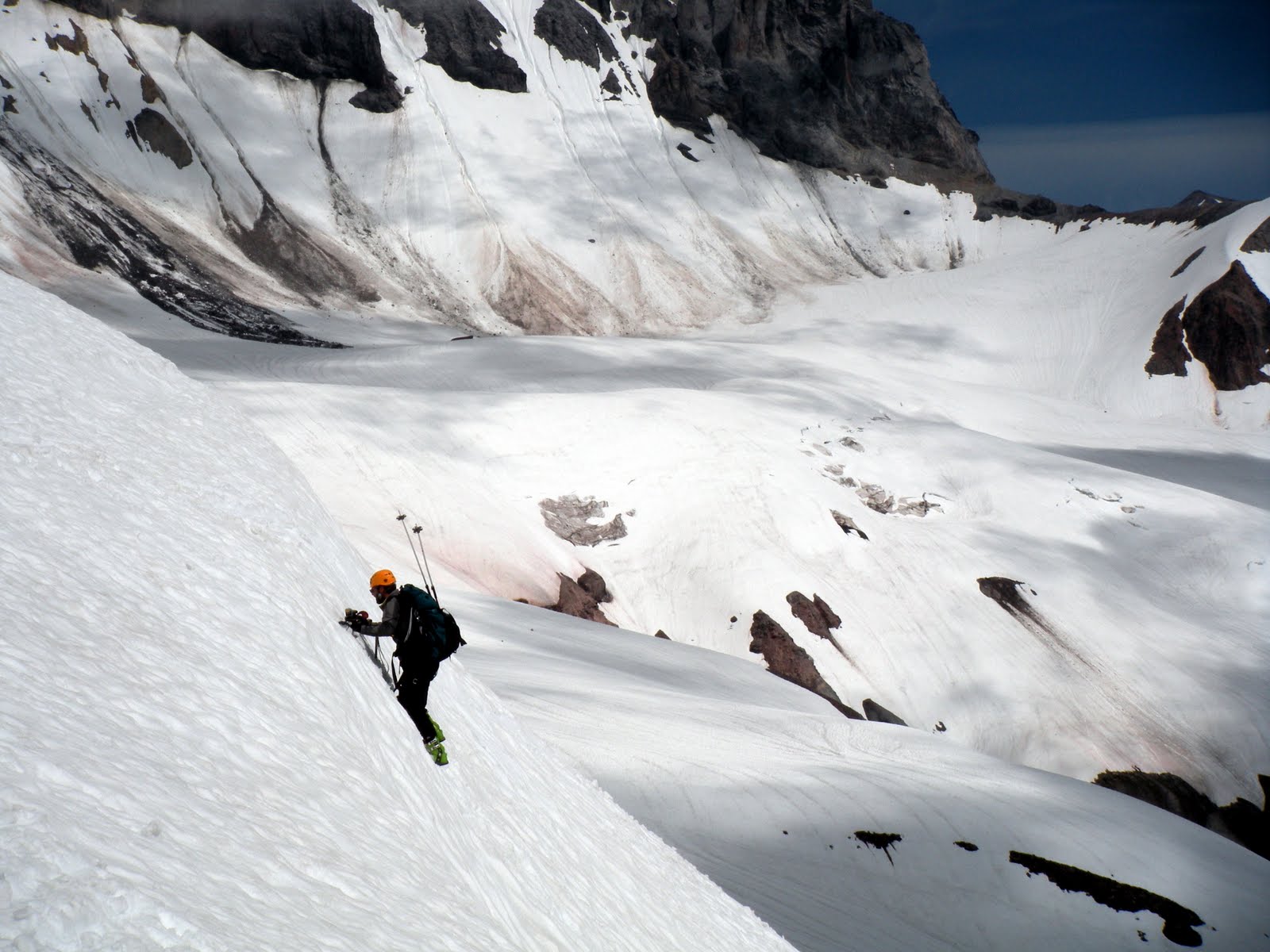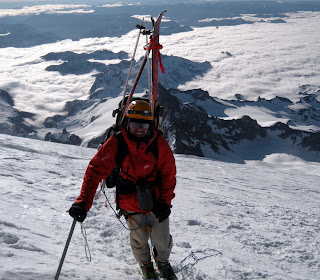 A few laps on Heliotrope Ridge and a trip to the summit the next day. A bit of a stretch but still worth it. Coleman-Demming route still totally skiable with only a few small cracks to avoid and some rocks on the Baker-Colfax Col.